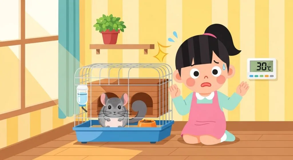 チンチラはもともとアンデス山脈っていう、寒くて乾燥した高い場所に住んでいた動物。だから、日本のジメジメした夏や、ムシムシする部屋は本当に苦手なんだ。 「人間が快適だから大丈夫っしょ!」っていうのは、チンチラにとってはサウナの中にいるようなもの。理想は20度くらいで、湿度は40%以下。これをキープできないと、熱中症であっという間に体調を崩しちゃう。