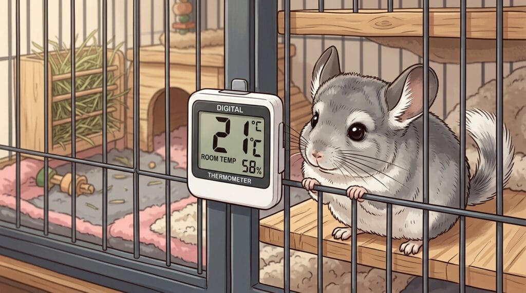 20度前後って、半袖でいると「あ、ちょっと涼しいかも?」って感じるくらいだよね。 でも、チンチラちゃんにとってはこれが一番活動的になれる、最高のコンディションなんだ。 特に、湿度が重要で、40%〜60%くらいに保ってあげるのが理想だよ。