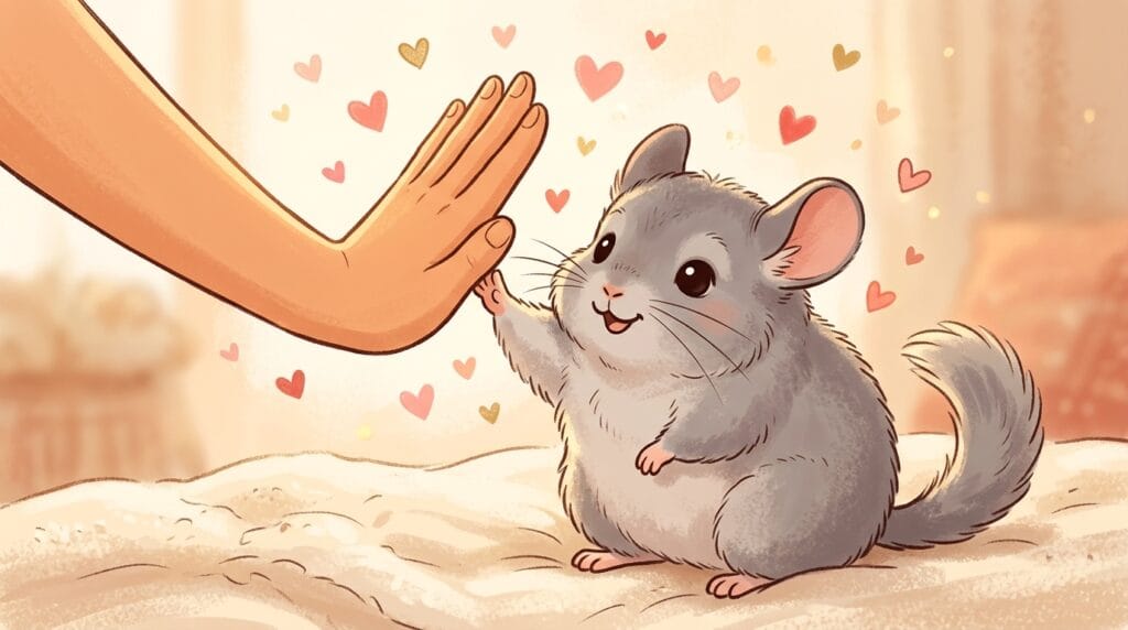 チンチラは賢い分、最初は慎重派な子が多いんだ。「この人は本当に信じていいのかな?」ってじっくり観察してるんだよ。だから、お迎えしてすぐは無理に触らず、優しく声をかけるところからスタートしよう。
