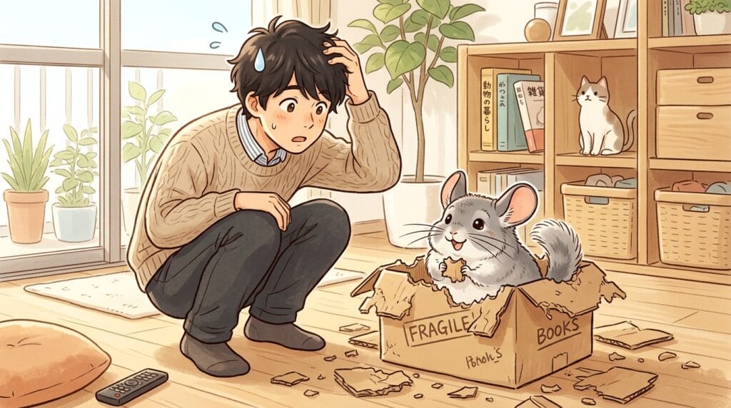 こういう「自分で考えて解決する」遊びは、チンチラの知能を刺激して、満足度をめちゃくちゃ高めてくれるんだ。