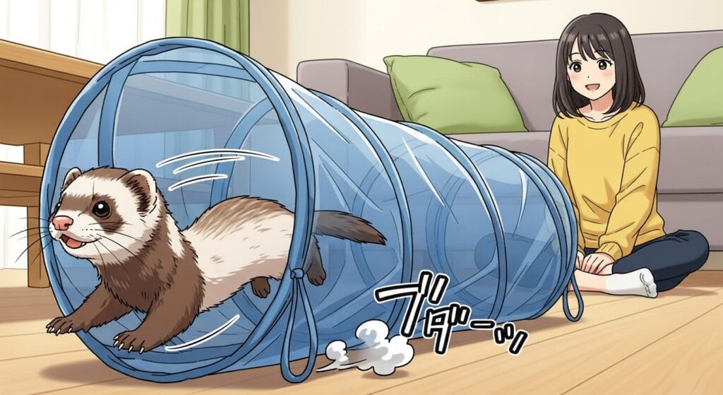 - 追いかけっこ&かくれんぼ: 飼い主さんが手を使って優しく追いかけっこしたり、おもちゃで遊んだりして、たくさん体を動かす機会を作ってあげてね。遊びはコミュニケーションにもなるし、フェレットちゃんもとっても喜ぶよ!