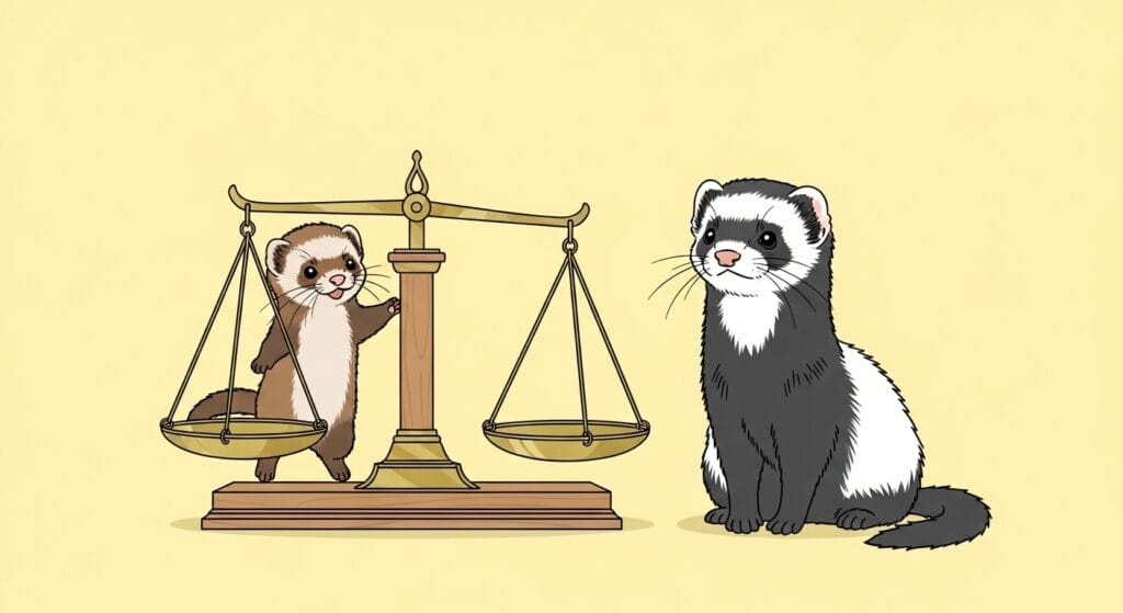 大切な家族の一員であるマーシャルフェレット。「ごはんもよく食べるし、元気いっぱい遊んでいるけど、この体重って標準なのかな?」って、ちょっと気になりますよね。特にフェレットちゃんは、男の子(オス)と女の子(メス)で体の大きさが結構違うから、目安の体重を知っておくのはとっても大事! この記事では、マーシャルフェレットの標準的な体重や、肥満をチェックする方法、そして健康的な体型を維持するための毎日のご飯や遊びのポイントを、優しくわかりやすくお話ししていきます。一緒に、愛するフェレットちゃんの健康を守っていきましょう!