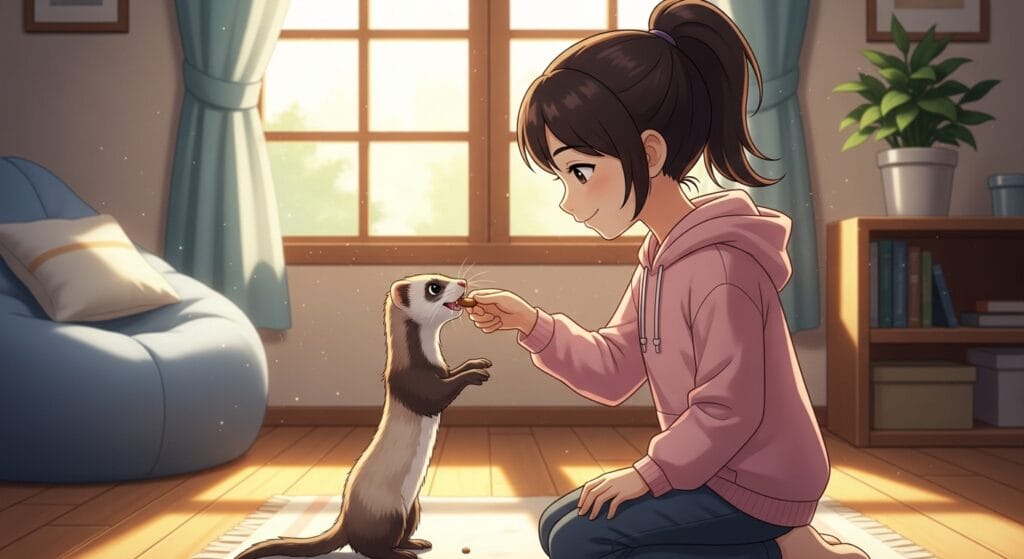 - 専用フードが基本:フェレット専用フードは、必要な栄養がバランスよく入っているから、これを主食にするのが一番!