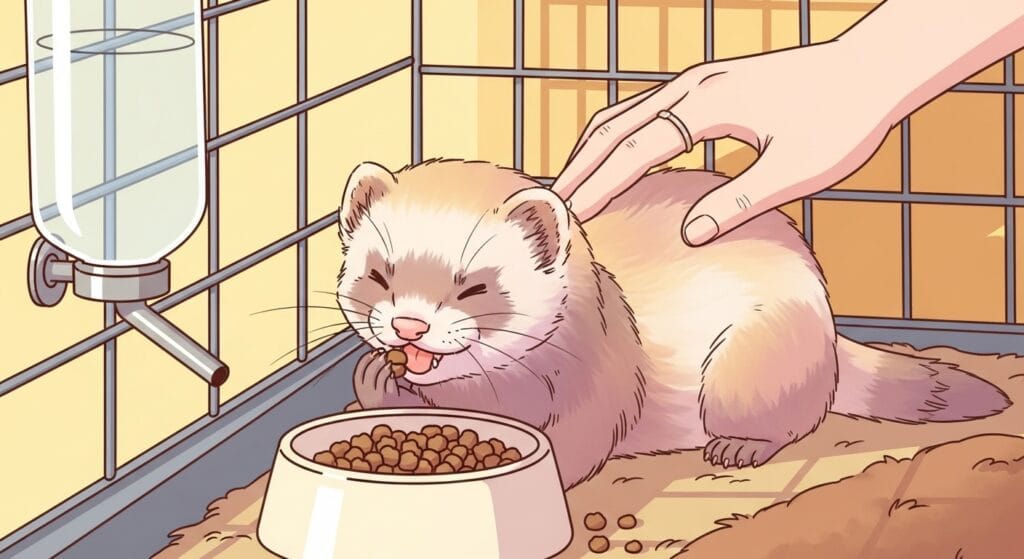 - 常にごはんを切らさない:フェレットのケージの中には、いつも新鮮なドライフードが入っている状態にしておこう。ごはんがなくなると、低血糖になっちゃう危険もあるから、要注意だよ!