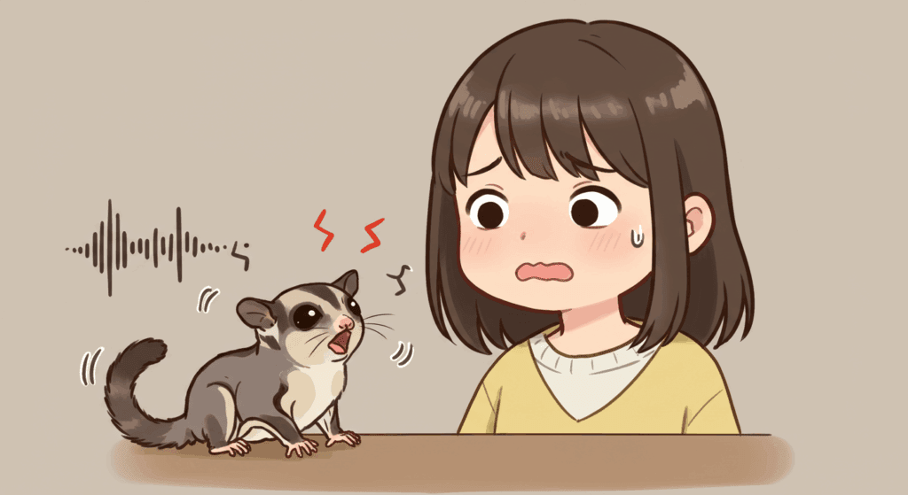 フクロモモンガの鳴き声の中で、飼い主さんを一番驚かせるのが、あの「キャンキャン!」とか「キーッ!」っていう叫び声(スクリーム)だよね。これは本当に緊急事態のサインで、
