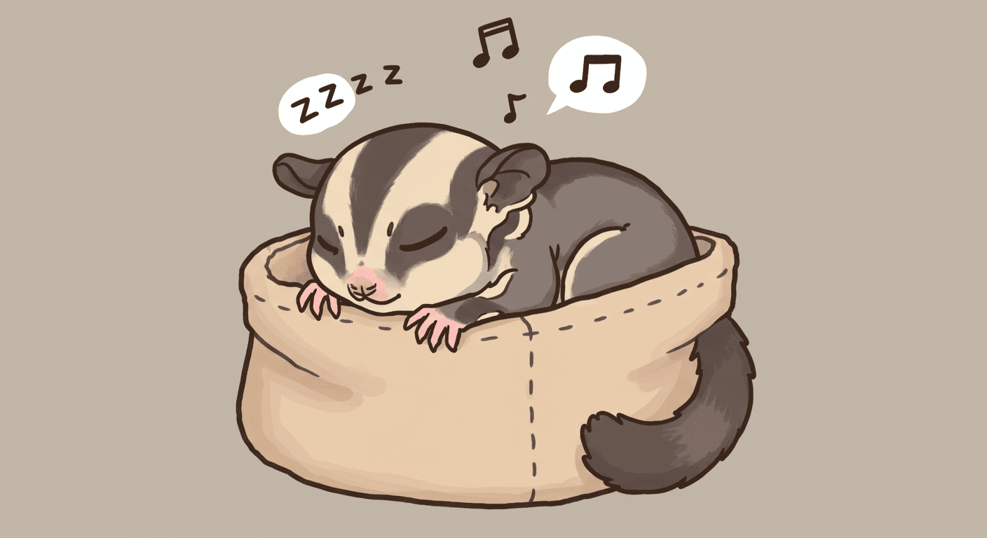フクロモモンガの出す「寝言」のような小さな声の多くは、警戒心がない状態、つまり安心しきっている状態で聞かれることが多いんだ。特に飼い主さんの手のひらで寝ていたり、お気に入りのポーチの中で丸くなっていたりする時に聞こえたら、それは「あ~、幸せだな~」ってリラックスしている証拠かも!