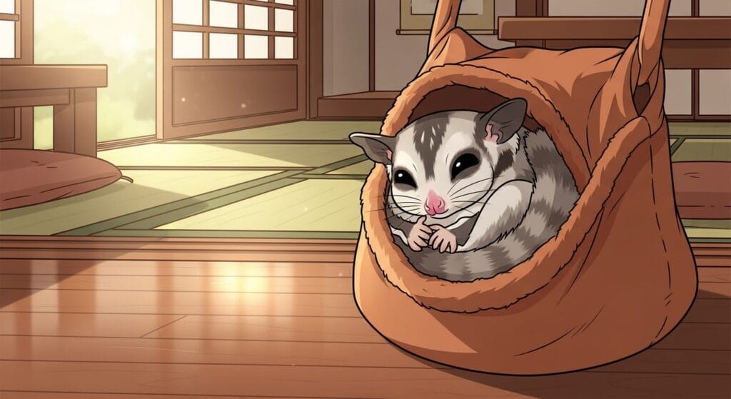もしケージを置いている部屋の明かりが夜遅くまでついているなら、ケージを布で覆って暗くしてあげるなどの工夫が必要です。フクモモの健康は、この「暗くしてあげる」というシンプルなことがとても大切なんです!