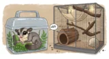 また、飛び回る習性があるため、ケージは広めで、高さがあるタイプが好ましいです。運動不足にならないように、おもちゃや滑空できるスペースを用意してあげましょう。これらを整えてあげることで、フクロモモンガはストレスなく健康に過ごせますよ♡