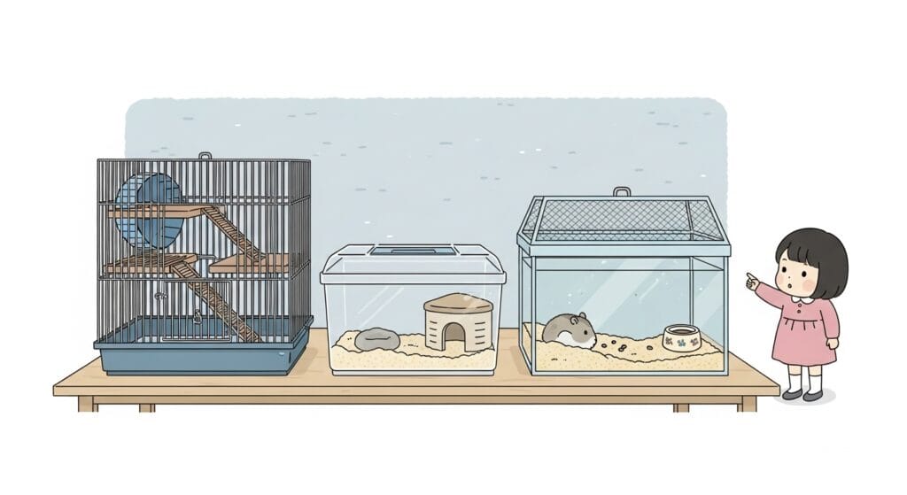 赤ちゃんハムスターの時にはちょうど良く見えたケージも、あっという間に「手狭」になっちゃう可能性があるんだ。だから、「大きくなっても大丈夫!」なゆったりサイズのケージを最初から選んであげるのが、後悔しないためのコツだよ!