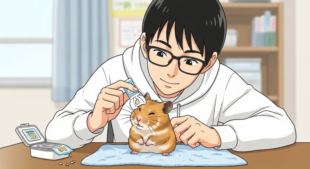 ・最終手段:飼い主さんが優しく拭き取ってあげる もし、ハムスターの毛並みがベタついてきたり、汚れがひどくなってきた場合は、砂浴びの代わりに、飼い主さんが優しく体を拭いてあげるしかないね。動物用のウェットティッシュ(ノンアルコール・無香料のもの)で、汚れている部分だけを軽く拭いてあげたり、乾いたタオルで優しくブラッシングしてあげたりするのも効果的だよ。