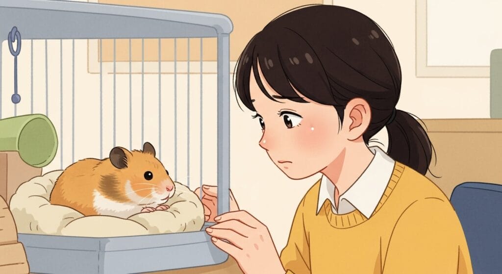 症状が続くようであれば、自己判断で市販薬をあげたりせずに、すぐに動物病院に連絡して、獣医さん(動物のお医者さん)に診てもらうのが一番安心だよ。ハムスターは体の変化が急なので、迷ったらすぐ病院が鉄則!