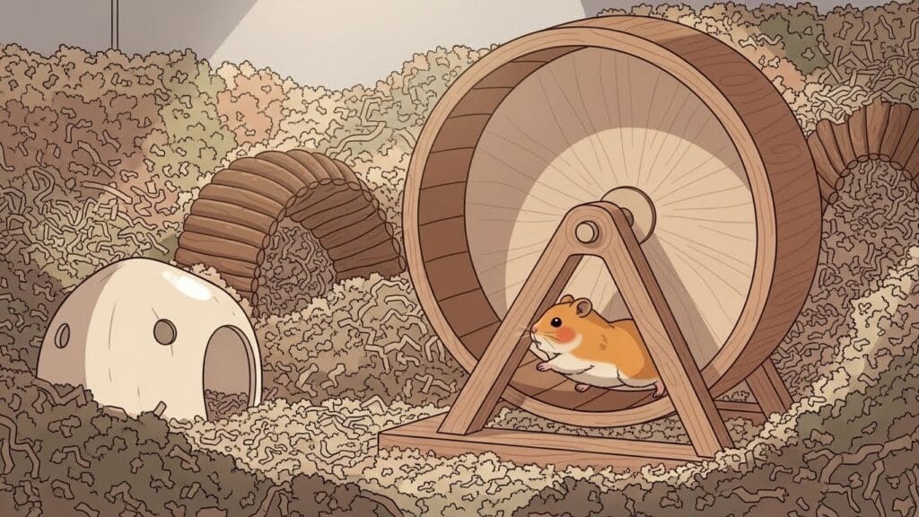 - 床材(マット):木製のチップや紙製の床材を使うのが一般的だよ。ハムスターは潜るのが大好きだから、5cm〜10cmくらいの深さになるように敷いてあげると、本能的に安心できるんだ。