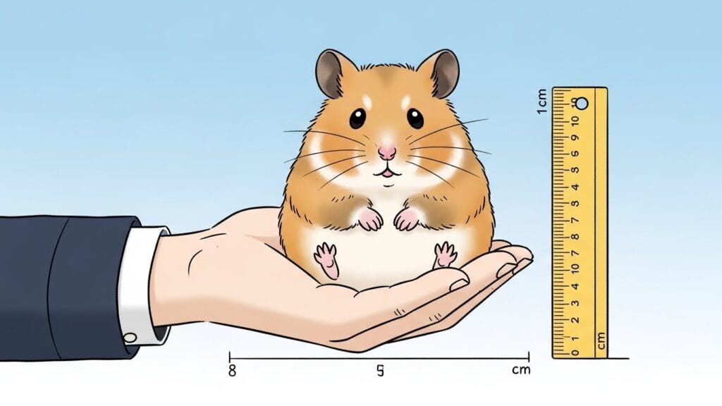 例えば、ゴールデンハムスターならだいたい20cmくらい、ジャンガリアンハムスターなら10cmくらいがマックスだよ。もし、成長しすぎていると感じたら、それは「肥満(ひまん)」かもしれないから、お医者さんに相談してみてね!