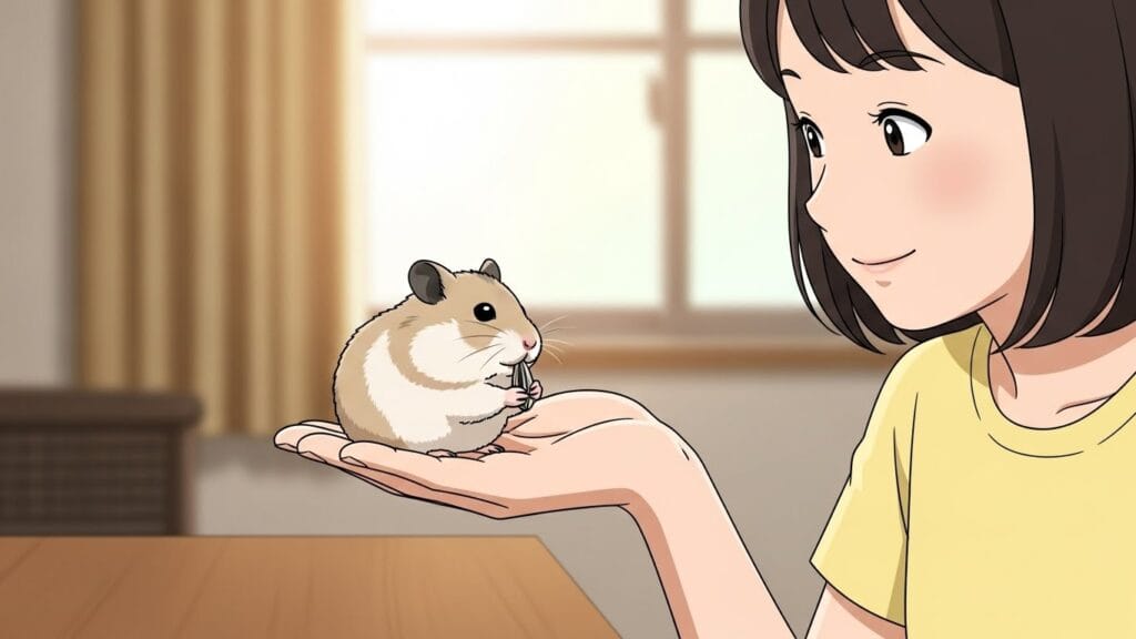 - 手から餌をあげる:警戒心が薄れてきたら、手のひらに乗せたおやつ(ヒマワリの種など)を、ケージの隅からそーっと差し出してあげよう。これで「この手は怖くないぞ」って分かってくれるよ。