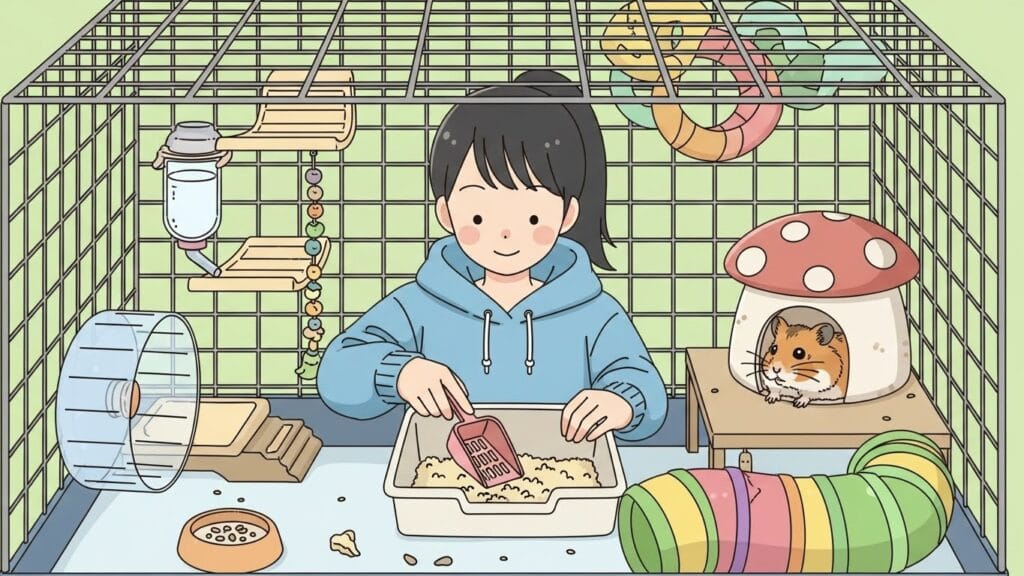 キャンベルハムスターはきれい好き!そして、汚れた環境は病気の原因にもなるから、お掃除は手を抜かずにやろう。