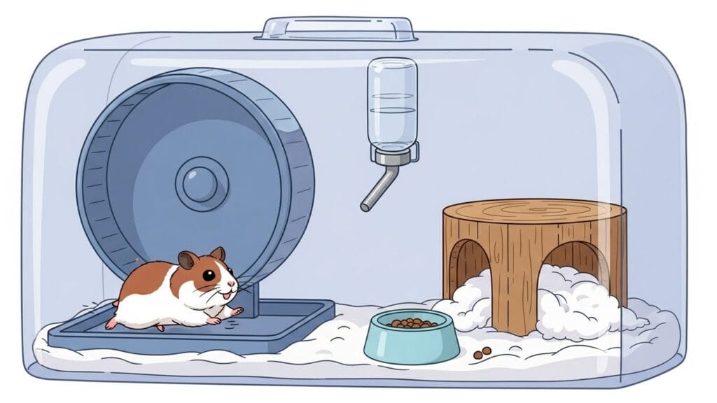 - プラスチックケージ:軽くて扱いやすいけど、通気性が悪くなりがち。そして、ハムスターがかじって壊しちゃうことがあるから注意が必要!
