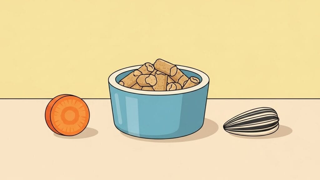 - 食べすぎ(高カロリーな食事): ひまわりの種やナッツ類は、ハムスターにとってのごちそうですが、カロリーが高いのであげすぎは禁物です。また、市販のペレット以外の「人間のおやつ」や「パン」などを与えていませんか?
