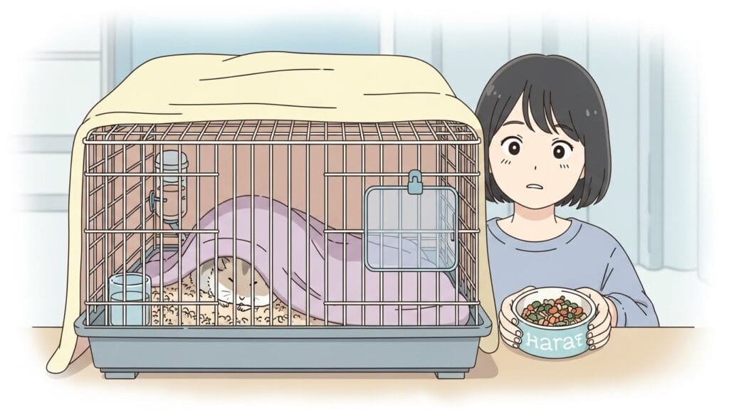 - のぞき見しない: 気になる気持ちはわかるけど、ケージをのぞき込んだり、頻繁に触ったりするのは絶対にやめてね。お母さんが安心して出産できるように、布などでケージの周りを覆ってあげて、暗くて落ち着く場所にしてあげるのがベスト。