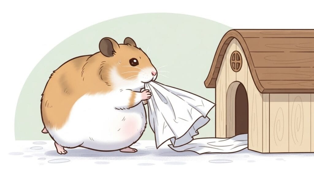 - 巣作りが熱心になる: 出産に備えて、床材(ウッドチップなど)をたくさん集めて、今までよりもずっと大きくて頑丈な巣を作るようになるよ。