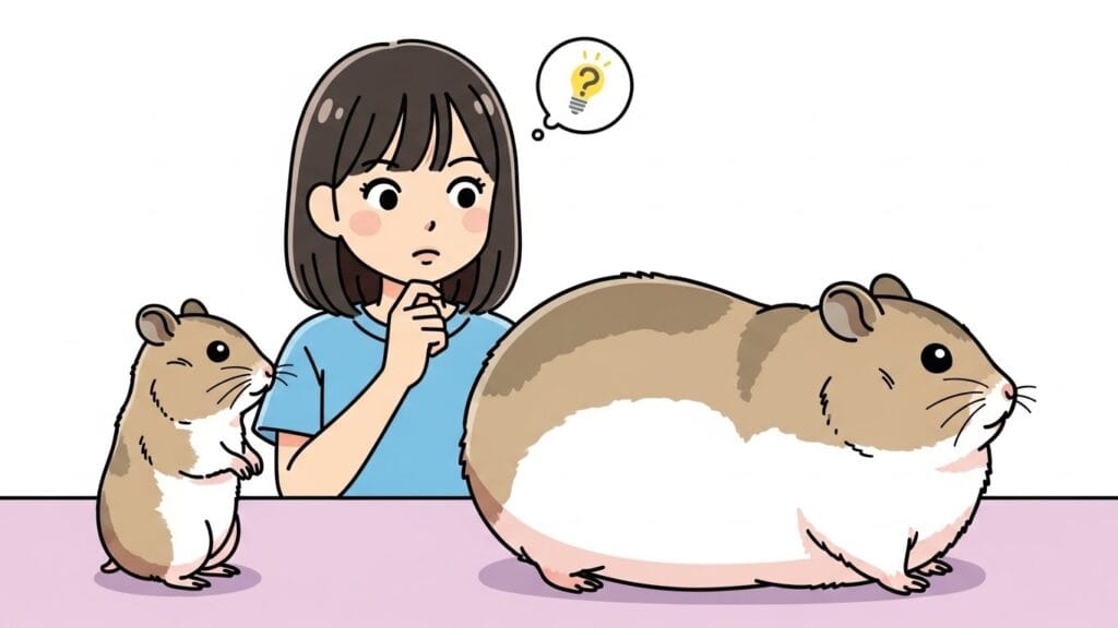 ジャンガリアンハムスターは体が小さい分、ちょっとしたご飯の量の違いが健康にダイレクトに響いちゃうんだよね。人間でいうところの「毎日毎食特盛ラーメン」みたいな生活になっちゃうと、病気の原因にもなっちゃう。