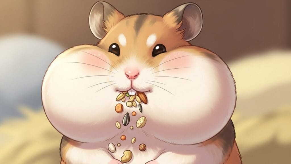 ハムスターには「頬袋(ほおぶくろ)」っていう、ご飯を運ぶための特別なポケットがあるんだよね。そこに詰め込めるだけ詰め込んで、自分の安全な寝床に運んで、後でゆっくり食べるのが彼らの習性。