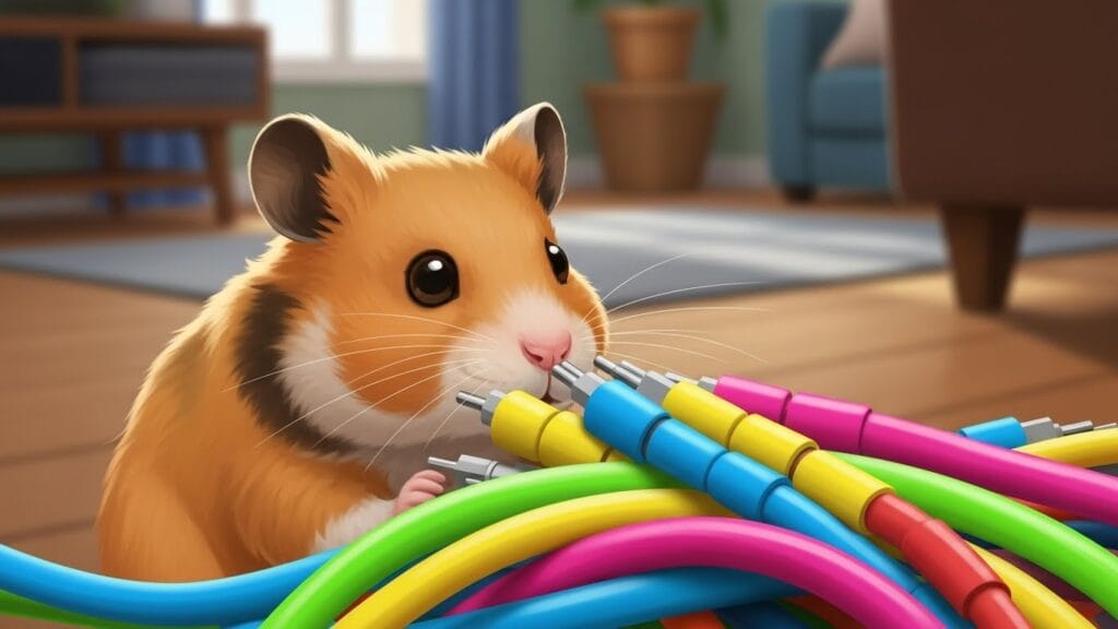 もし脱走中に電気コードをかじっちゃったら、ハムちゃんが感電して大怪我をするかもしれないし、火事の原因にもなる。