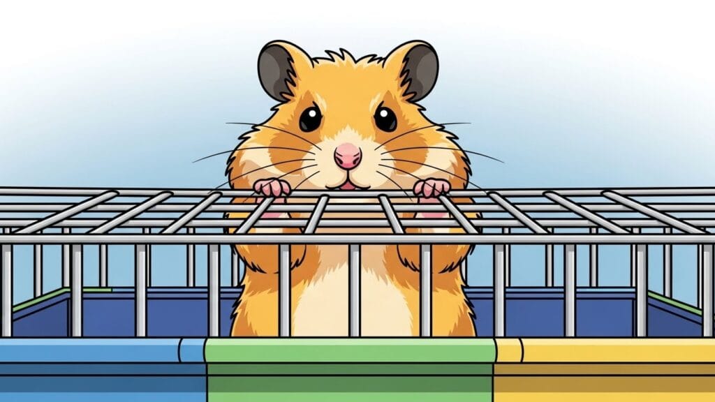 「この隙間なら大丈夫でしょ」と思っても、頭さえ通れば体は抜けられちゃうのがハムスター。もし不安なら、金網のない水槽タイプや、つるつるしたプラスチック製のケージに変えるのが一番安心だよ。