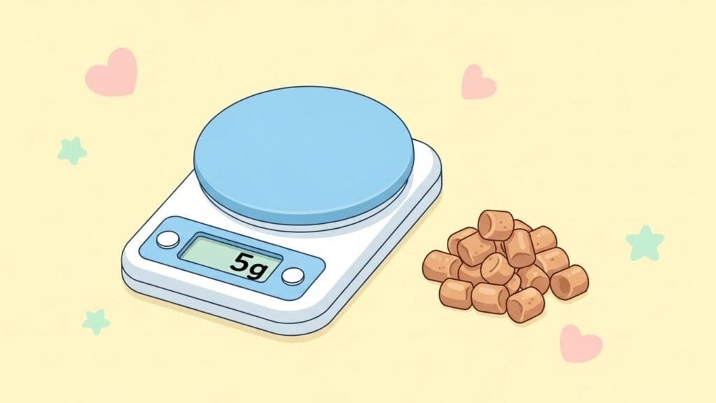 「たったのそれだけ?」って思うかもしれないけど、ハムスターの体にとってはこの量がフルコースなんだ。キッチンスケール(はかり)があれば、一度量ってみると「あ、これくらいなんだ!」って感覚がつかめるからおすすめだよ。