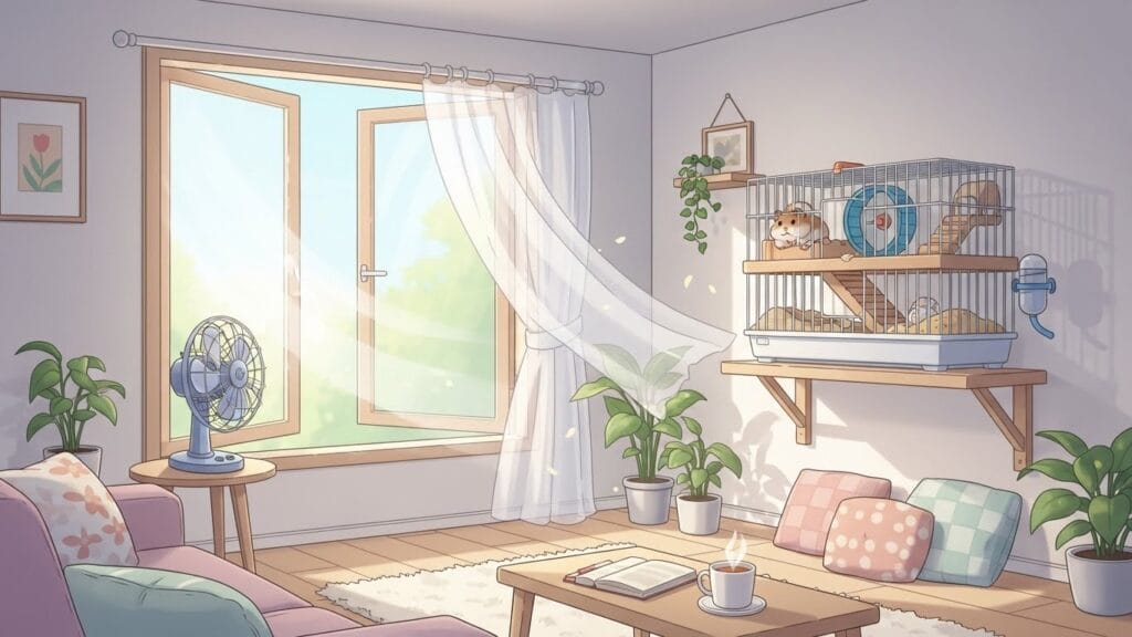 ケージをクローゼットの中とか、風通しの悪い隅っこに置いてない?空気がこもると、どうしてもニオイが溜まりやすくなっちゃうんだ。