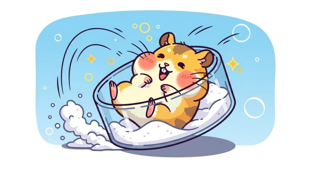 ハムスター、特にロボロフスキーは皮膚から脂が出やすいんだ。そのままにしておくと毛がベタベタして、せっかくの綺麗なブルーが台無しになっちゃう。 専用の砂を置いた「砂浴び場」を作ってあげると、そこでゴロゴロ回転して、体の汚れを落としてくれるんだ。