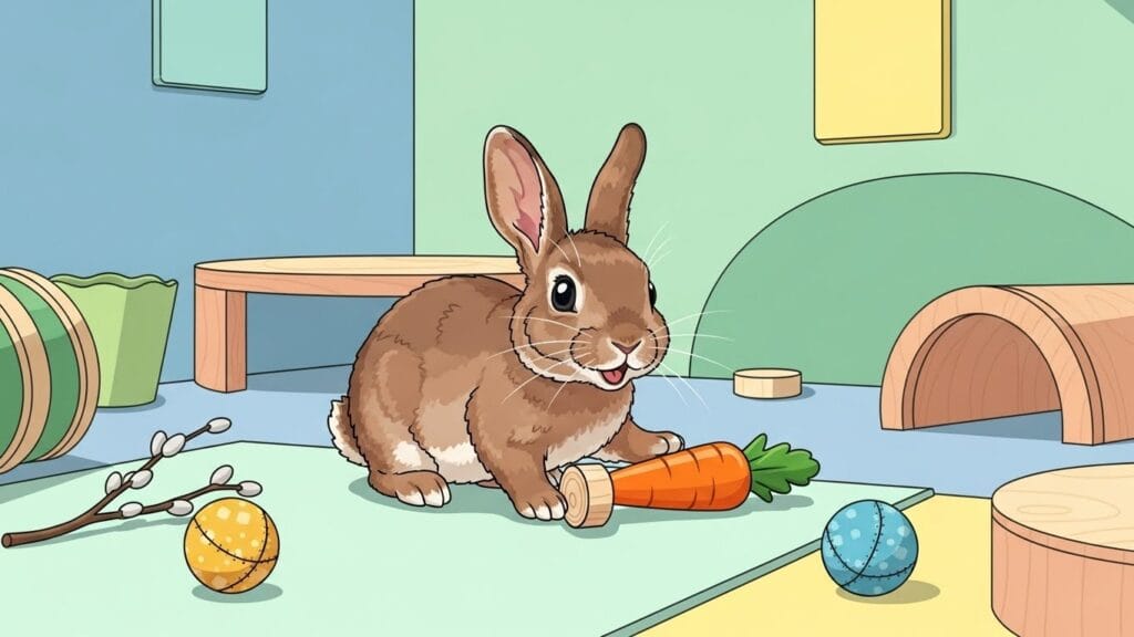 特に、物を掘ったり、噛んだりする遊びが好きだから、かじり木のおもちゃや、転がせるボールなどを用意してあげると、喜んで遊んでくれるよ。ただ、好奇心旺盛な分、電気のコードとか、かじっちゃいけないものにも興味を持っちゃうから、お部屋で遊ばせる「うさんぽ」の時は、目を離さないように注意が必要だよ!コードカバーをつけたり、危ないものは片づけたりして、安全な環境で思いっきり遊ばせてあげようね。