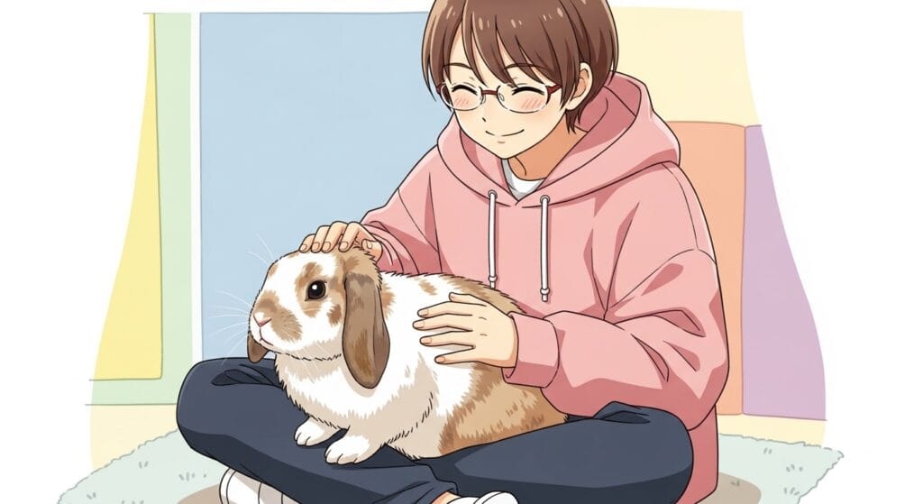 大人のウサギさんは、自分の時間を大切にしたい派が多いんだよね。寝てる時や毛繕いしてる時に無理やり抱っこしようとすると、「ちょっと今は無理!」って嫌われちゃうかも。