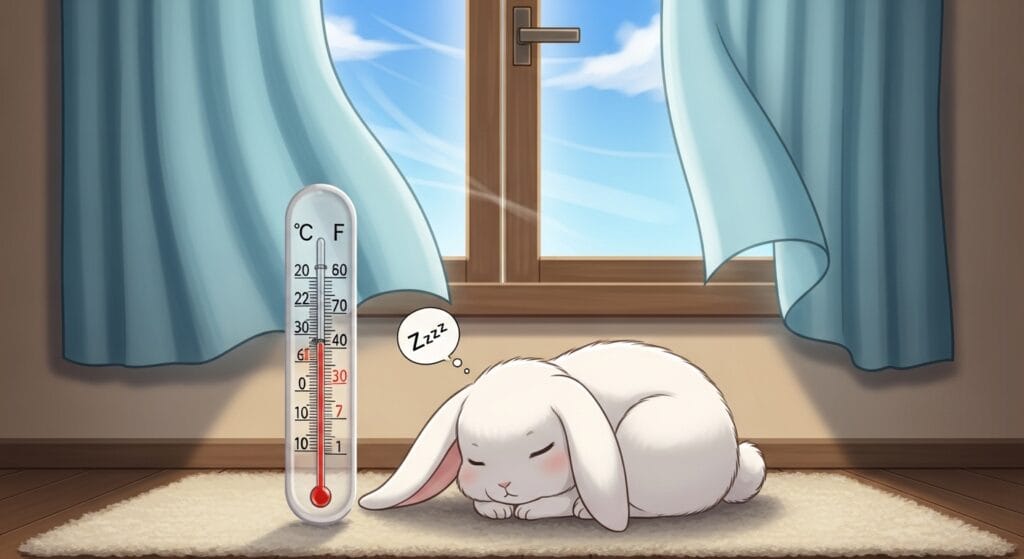 ウサギさんは温度変化にめちゃくちゃ弱いんだ。特に夏のアツアツと冬のブルブルは天敵。エアコンを上手に使って、人間が「ちょっと涼しいかな?」と感じるくらいの快適な温度(だいたい20度〜24度くらい)をキープしてあげよう。