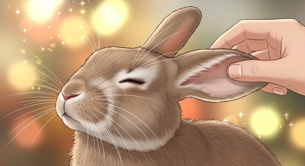 ウサギさんが鼻でツンツンしてきたら、それは「おはよ!」とか「そこにいるの分かってるよ」っていう親愛の証。そんな時は、優しくおでこを撫でてあげてね。大人同士の、落ち着いたコミュニケーションを楽しもう。