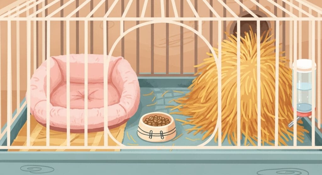 お店で一番小さいケージを買っちゃうと、ウサギさんが大きくなったときに窮屈になっちゃう。ウサギさんが中でゴロンと寝転がっても余裕があるくらいの、ちょっと広めのケージを選んであげてね。その方がウサギさんもリラックスできるんだ。