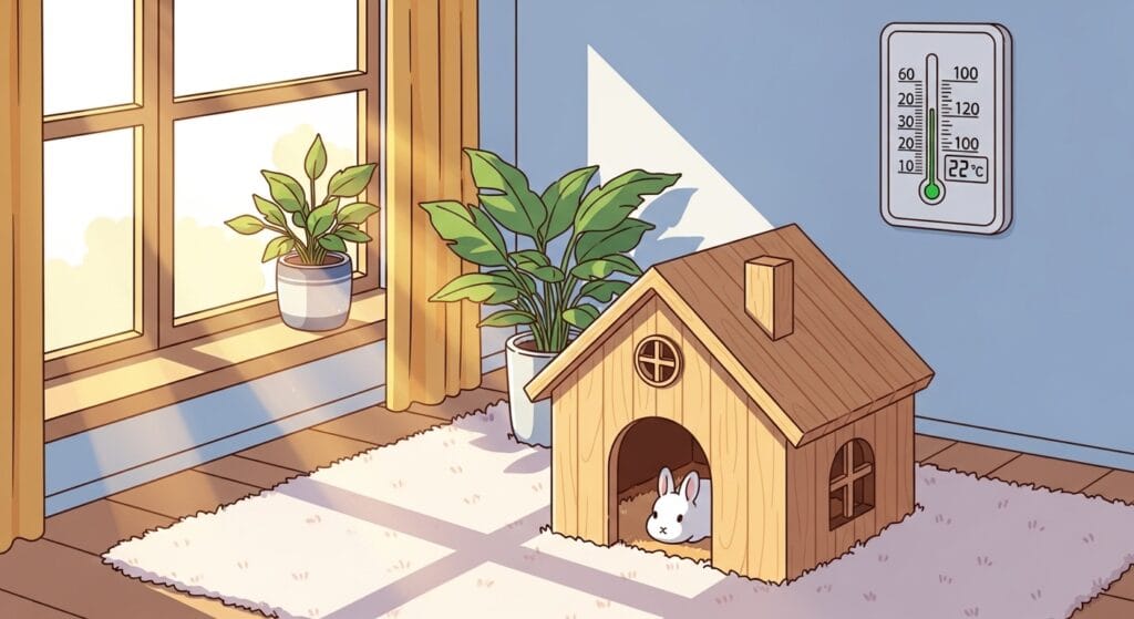 理想は20度から24度くらい。夏場はエアコンを24時間フル稼働させて、涼しい環境を作ってあげよう。冬も寒すぎると体調を崩しちゃうから、ペットヒーターとかを使って、冷えすぎないように気をつけてあげてね。
