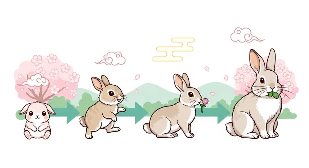 ウサギさんの成長って、実はめちゃくちゃ早いんです。人間だと20年くらいかけて大人になるけど、ウサギさんはたったの半年から1年で「大人」の体型になっちゃいます。