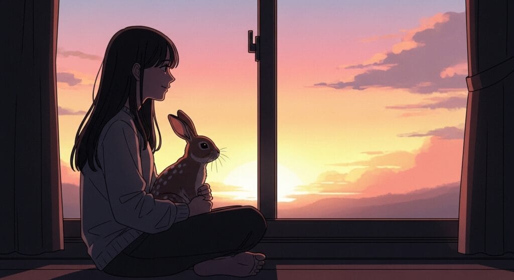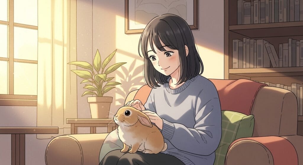 うさぎを飼うって、ただ「可愛い」だけじゃないんだよね。夜、静かにお部屋で過ごしている時に、フォーンちゃんが足元に寄ってきてくれたり、手からおやつを食べてくれたり。その小さな命の温かさを感じるだけで、「今日も一日頑張ってよかったな」って思える。