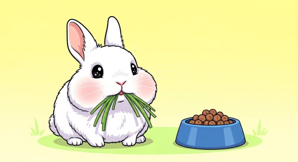 「うさぎといえばニンジン」っていうイメージがあるかもだけど、実はメインのご飯は「チモシー」っていう乾燥した草なんだ。これをムシャムシャ食べることで、伸び続ける歯を削ったり、お腹の調子を整えたりしてるんだよ。