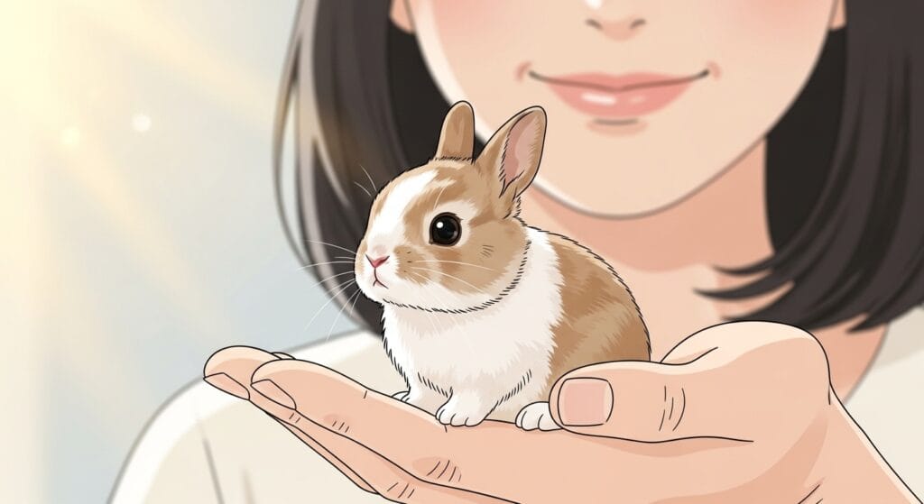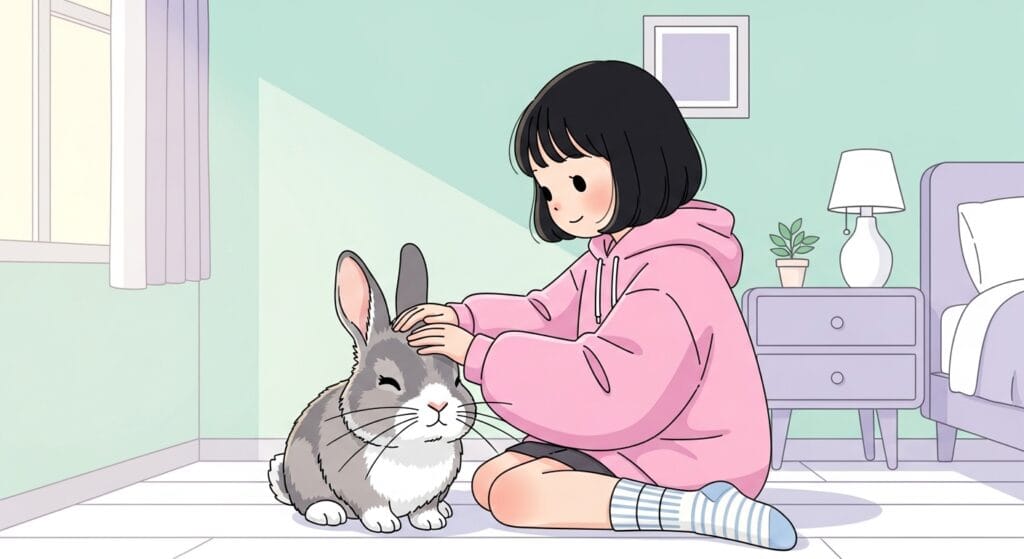 最初はちょっと警戒しちゃう子もいるかもしれない。でも、焦りは禁物!まずは床に座って、うさぎさんと同じ目線になってみて。自分からグイグイ行かずに、向こうから「くんくん」って鼻を近づけてくるのを待つのがコツ。