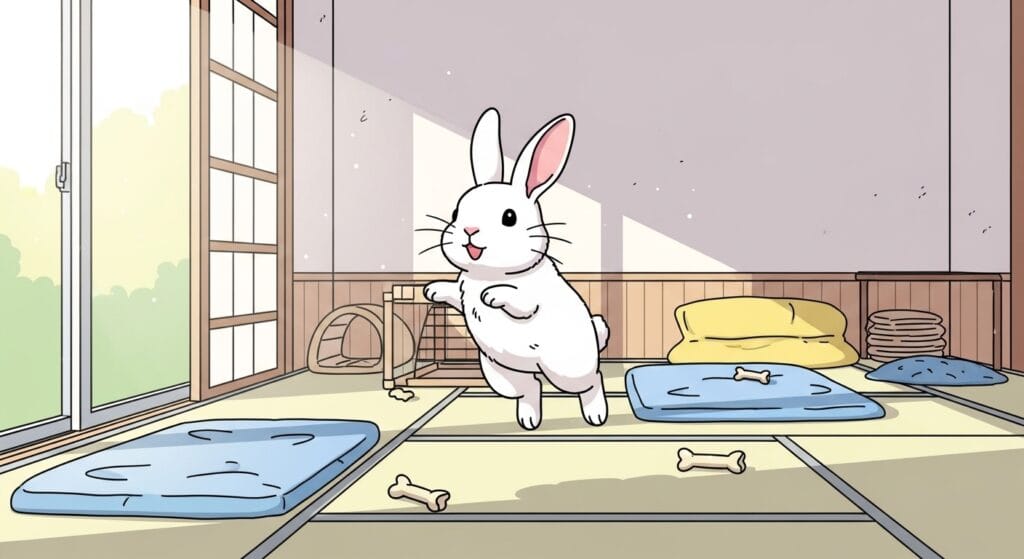 白ネザーちゃんをお迎えするなら、まずは安心できる「おうち(ケージ)」を用意してあげてください。 うさぎさんは地面を走るのが大好き。ケージの中だけじゃなくて、お部屋の中で安全に遊べるスペース(へやんぽエリア)も作ってあげると、ストレス解消になります。
