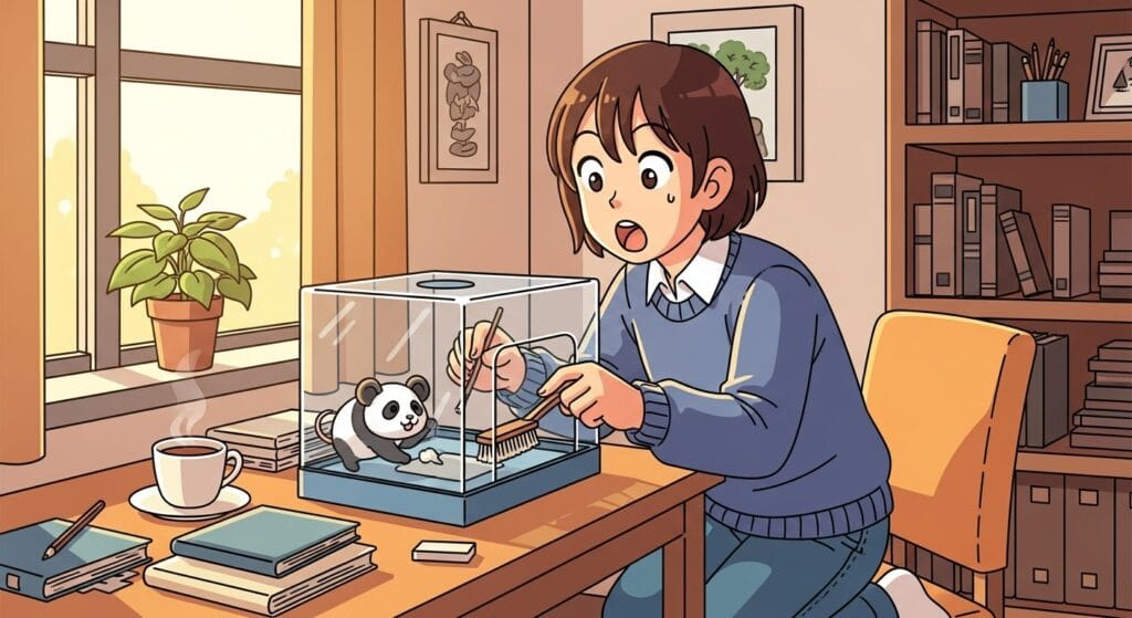 最近のペット用消臭スプレーは本当に優秀です。 でも、パンダマウスは鼻がすごく良いので、人間用の香水みたいな香りがする消臭剤はNG。「天然成分100%」とか「ペットが舐めても安心」って書いてある無香料のタイプを選んでください。