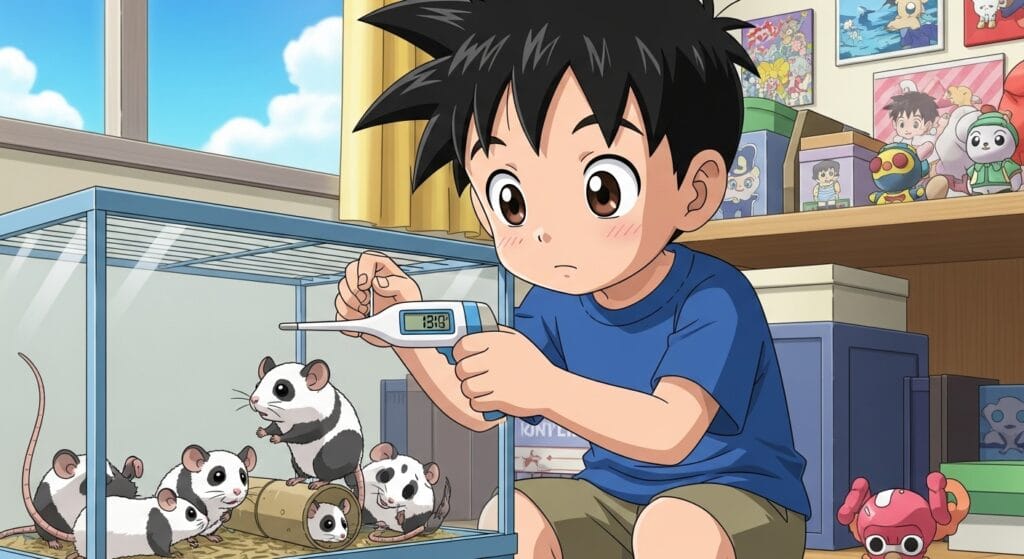夏はエアコンで涼しく、冬はペット用ヒーターを使って暖かくしてあげてね。特に冬、寒すぎると「疑似冬眠」っていう危ない状態になっちゃうこともあるから、しっかり温めてあげることが大切だよ!