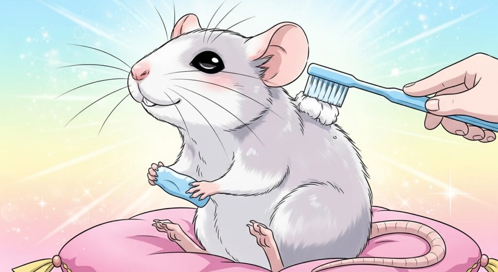 ラットちゃんを観察してると、ずっと手をペロペロしたり、顔を洗ったりしてない? あれは「グルーミング」って言って、体についた汚れや古い毛を自分で一生懸命取り除いているんだ。 唾液には殺菌作用みたいなものもあるし、自分で毛並みを整えることで、体温調節もバッチリこなしてる。 だから、健康なラットちゃんなら、放っておいても体はわりと清潔に保たれているんだよね。