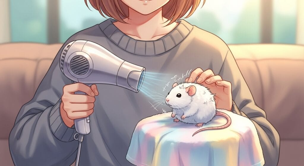 ラットちゃんは体が小さいから、一度濡れるとあっという間に体温が下がっちゃうんだ。 僕たち人間も、冬に水に濡れたらガタガタ震えるでしょ? ラットちゃんにとっては、その何倍も「寒い!死んじゃう!」って感じやすいんだよ。 体が冷えると風邪を引きやすくなるし、ラットちゃんの風邪(呼吸器の病気)は命に関わることも多いから、本当に注意が必要なんだ。