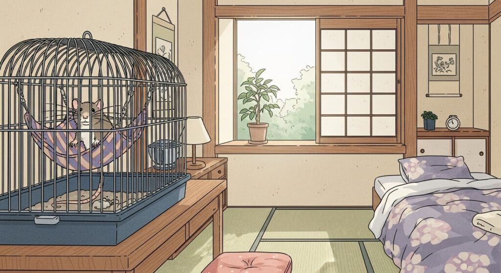 ラットは視力があんまり良くない代わりに、鼻がめちゃくちゃ利くんだ。君の匂いがついた「使い古しの靴下」とか「布の切れ端」をケージの隅っこに入れてみて。そうすると、寝ている間に君の匂いをクンクンして、「この匂いは怖くないんだ!」って学習してくれるよ。