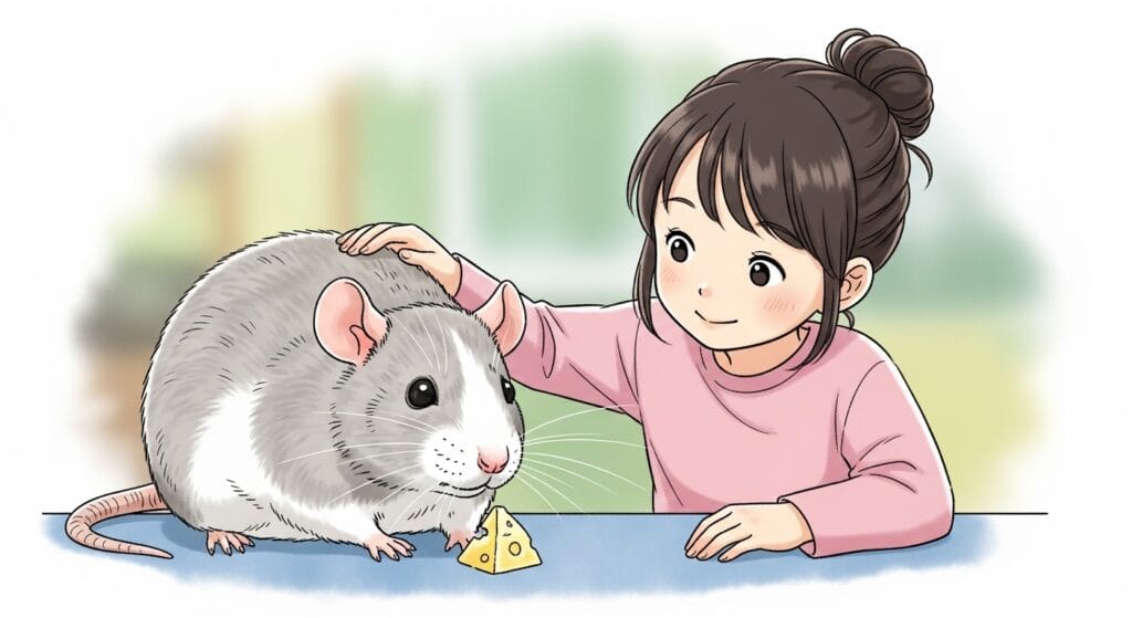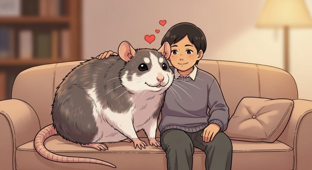 「意外と大きいんだな」って思ったかもしれないけど、その大きさこそがファンシーラットの魅力!ギュッと抱きしめたくなるような、温かい存在感があるんだ。