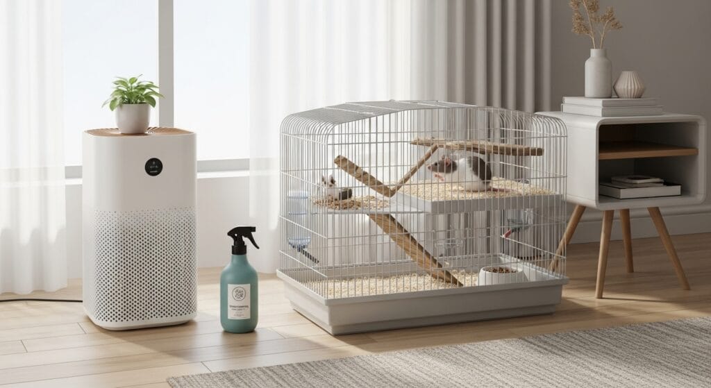 匂いの原因のほとんどは、布製品(ハンモックやタオル)に染み込んだおしっこ。これをこまめに洗うだけで、お部屋の匂いはかなり抑えられるよ。