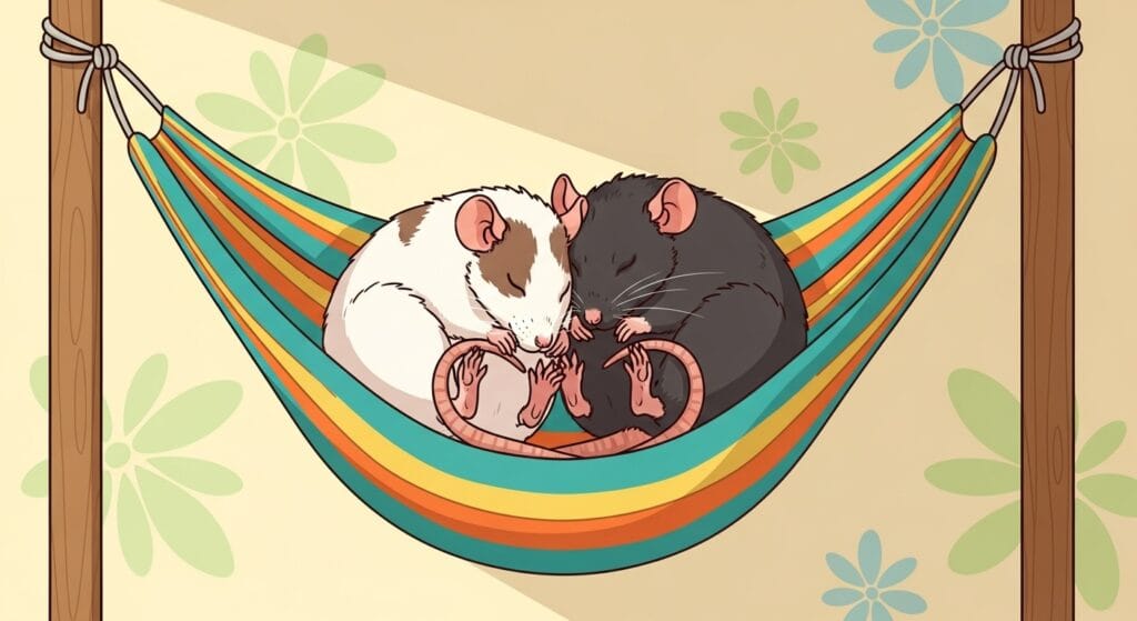 これはもう、ラット飼い主の特権。ゆらゆら揺れながらスヤスヤ寝てる姿は、見てるだけで癒やし効果バツグンだよ。