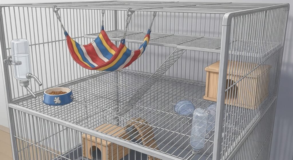 ラットは上下運動が大好き。だから、ハムスター用の横長ケージよりも、背が高い「シマリス用」や「デグー用」のケージがおすすめだよ。